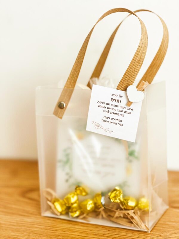 ערכת בלוק מעוצב בשקית יפה עם הקדשה וסוכריות